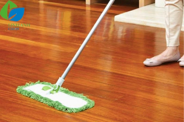 - Lau nhà: Quan trọng nhất là vắt thật khô cây lau nhà hoặc khăn lau. Khăn/cây lau chỉ nên hơi ẩm để loại bỏ vết bẩn mà không để lại nước trên sàn. Lau theo chiều vân gỗ.
